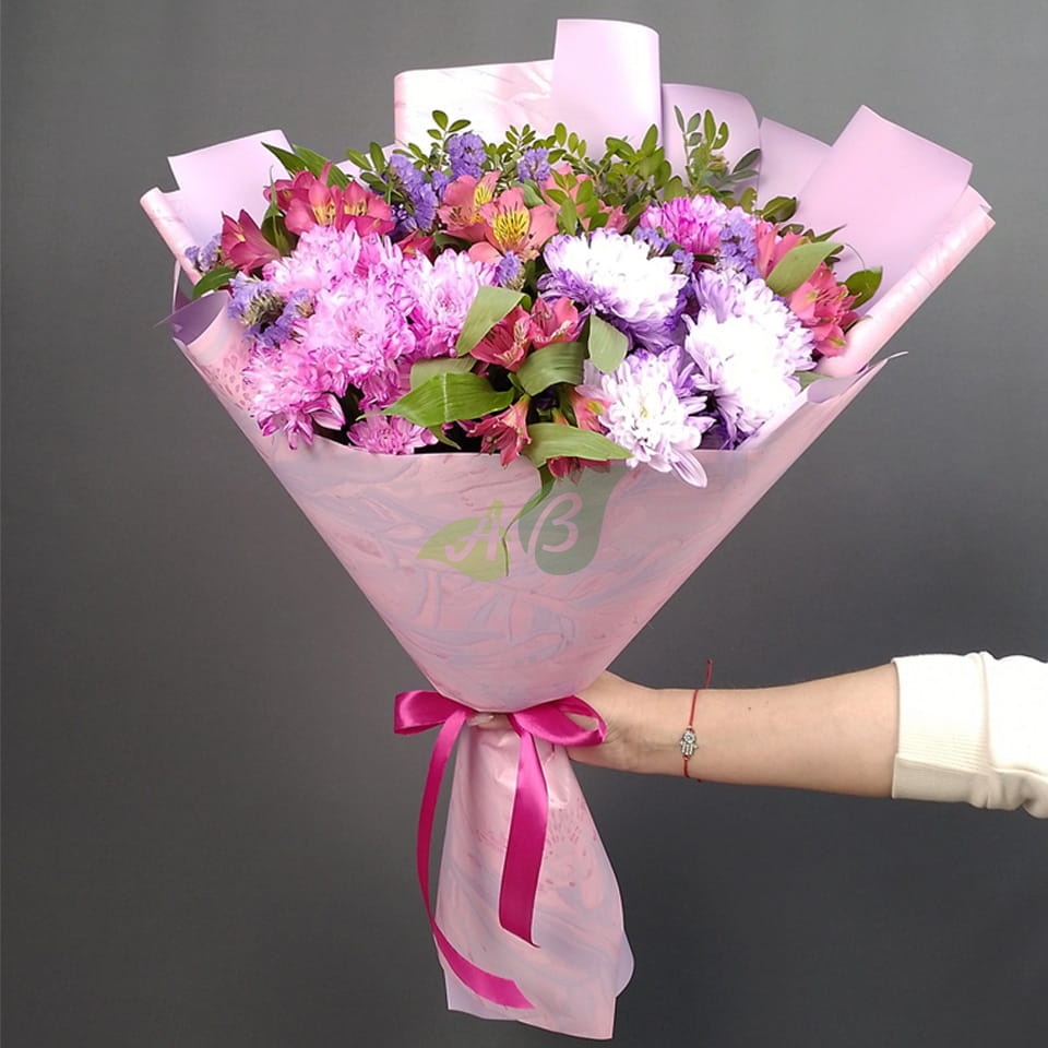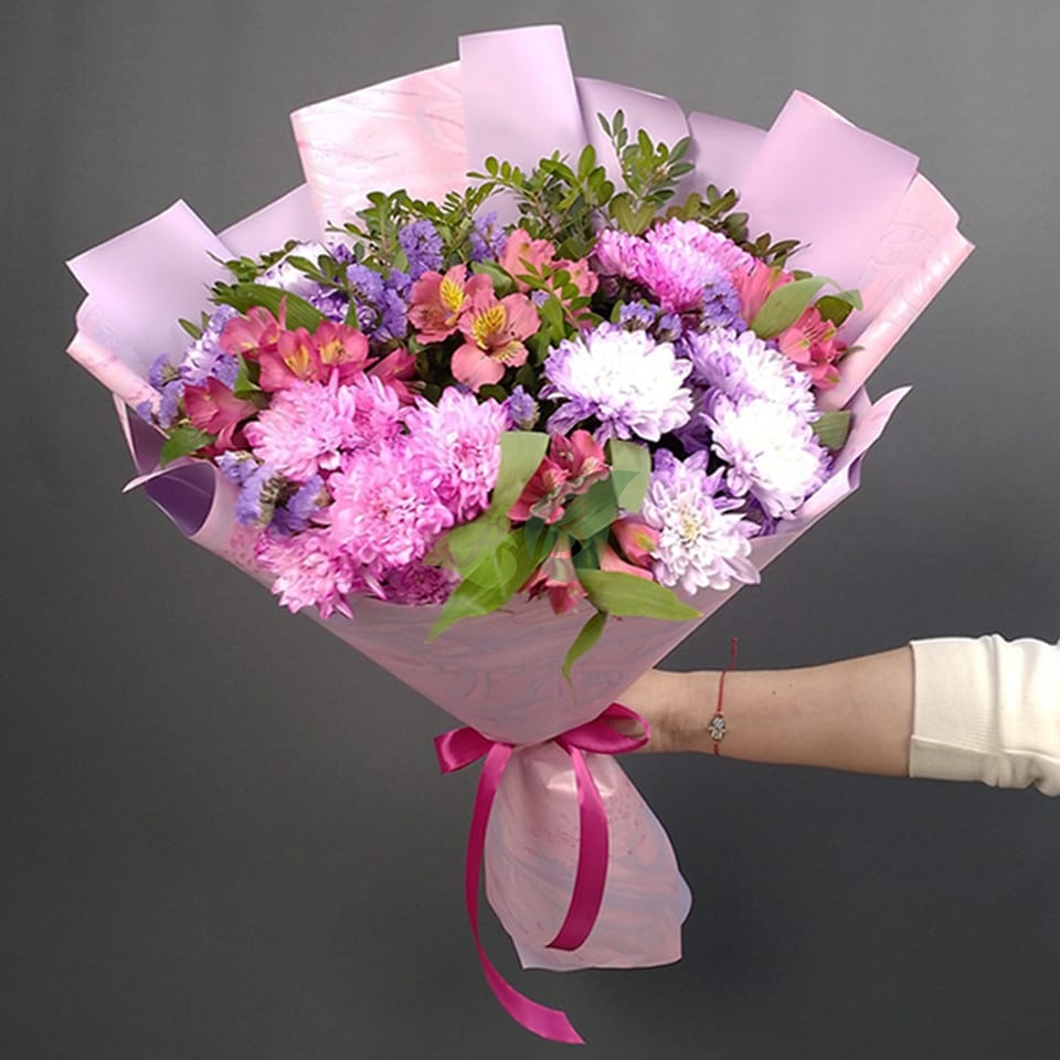 В нашем магазине цветы всегда в наличии, поэтому, если вам нужен букет цветов с быстрой доставкой, то звоните. Через час после заказа альстромнрии и хризантемы будут у вас дома или в офисе.